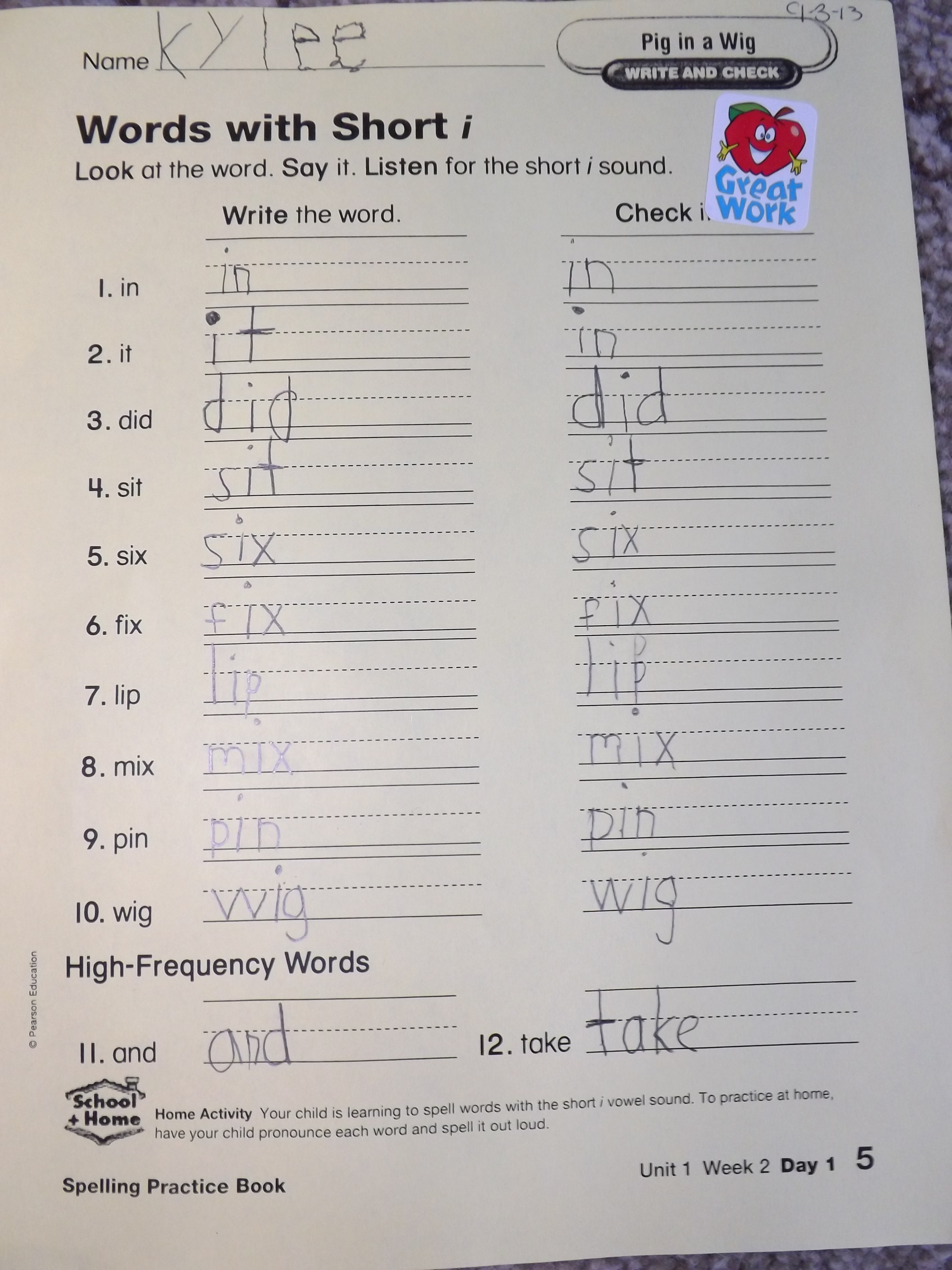 1st grade school papers