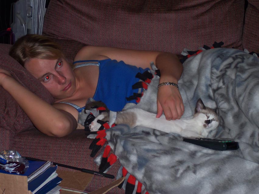 Mocha sleeping with Jess